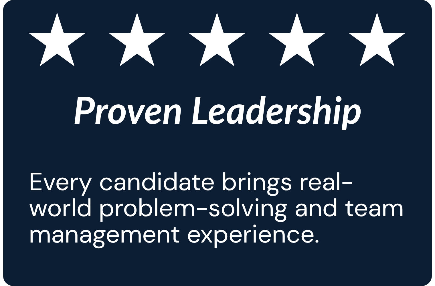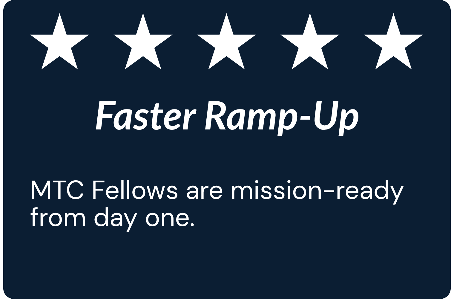 Active-duty professionals preparing for civilian careers through Fellowship programs. They’re ready to contribute immediately while gaining valuable on-the-job experience.